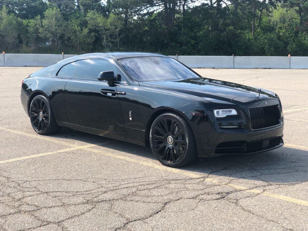 2016 Rolls Royce Ghost Series II. Loaded with Options! Two Keys! Serviced at Grand Touring! Midnight Sapphire Metallic Paint on Custom White and Dark Blue Leather Interior with Wood Trim and Full White Suede Headliner. 6.6L V12 Naturally Aspirated Engine and 8-Speed Automatic Transmission, Producing 563 HP and 575 LB of Torque. 22″ Multi-spoke Wheels Finished in Brushed Aluminum (Has OEM Five Twin Spoke Fully Polished Alloy Wheels). Both RR Umbrellas in Front Doors. Dynamic Package. Extended Leather. Package Drivers Assistance Package. Coachline (from Standard Palette). Individual Seat Configuration. Front and Rear Ventilated Seats. Bespoke Interior Scheme. Black Coloured Steering Wheel. White Cloth Headlining with Panoramic Sunroof. Lowering Links Front and Rear Parking Sensors. Rear View Cameras. Aerial View Camera. Adaptive Cruise Control. Bluetooth. SiriusXM. AM & FM Radio. CD Player Navigation System & Much More!