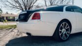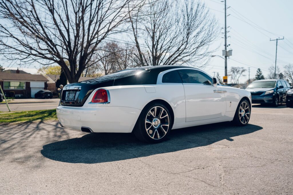 2017 Rolls Royce Wraith | Loaded with Options | Original Car Manual Books | Starlight Roofliner | Bespoke Rolls Royce Audio System | Two Tone English White and Black Paint on Seashell Leather Interior with Fine Woodgrain Piano Lacquer Black Accent Interior Scheme. 6.6L Turbocharged V12 Engine and 8-Speed Automated Transmission, Producing 624 HP and 590 LB of Torque. 21” Upgraded Wheels. Driver Assistance 3 Package. Starlight Headliner. Bespoke Rolls Royce Audio. RR Monogrammed Headrest. Adjustable Ride Height. Extended Leather Trim. Lambswool Floor Mats. Puddle Lights. Ambient Lighting. Powered and Memory Front Seats. Heated and Ventilated Front Seats. Front and Rear Dual Climate Control. Heads-Up Display. Night Vision Camera. Night Vision with Person Recognition. System High Beam Assistance. Driving Assistant Plus. Lane Departure Warning. Active Cruise Control. Soft Close Doors. Heated Steering Wheel. Rear and Top View Camera. Parking Sensors. Bluetooth. SiriusXM. AM & FM Radio. CD Player. Navigation System & Much More!