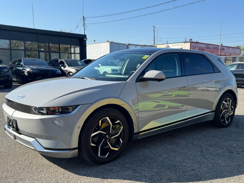 2022 Hyundai Ioniq 5 Limited. Has Books! Sunroof Package! Full Leather Interior Package! Cyber Grey Paint on Black Full Leather Interior. 239kW Electric Motor with Single-Speed Reduction Gear with Paddle Shifters, Producing 320 HP and 446 LB of Torque. Powered Front Seats. Heated Leather Steering Wheel. Full Cloth Headliner. Heads Up Display. Forward Collision Avoidance. Parking-Automatic-Remote System. Driver Monitoring-Alert. Lane Follow Assist. Blind-Spot Collision-Avoidance Assist. Blind Spot Assist. Evasion Assist. Aerial View Camera System. Front and Back Surround View Camera. Front And Rear Parking Sensors. Adaptive Cruise Control. Bluetooth. Apple CarPlay. Android Auto. SiriusXM. AM & FM Radio. Navigation System & Much More!